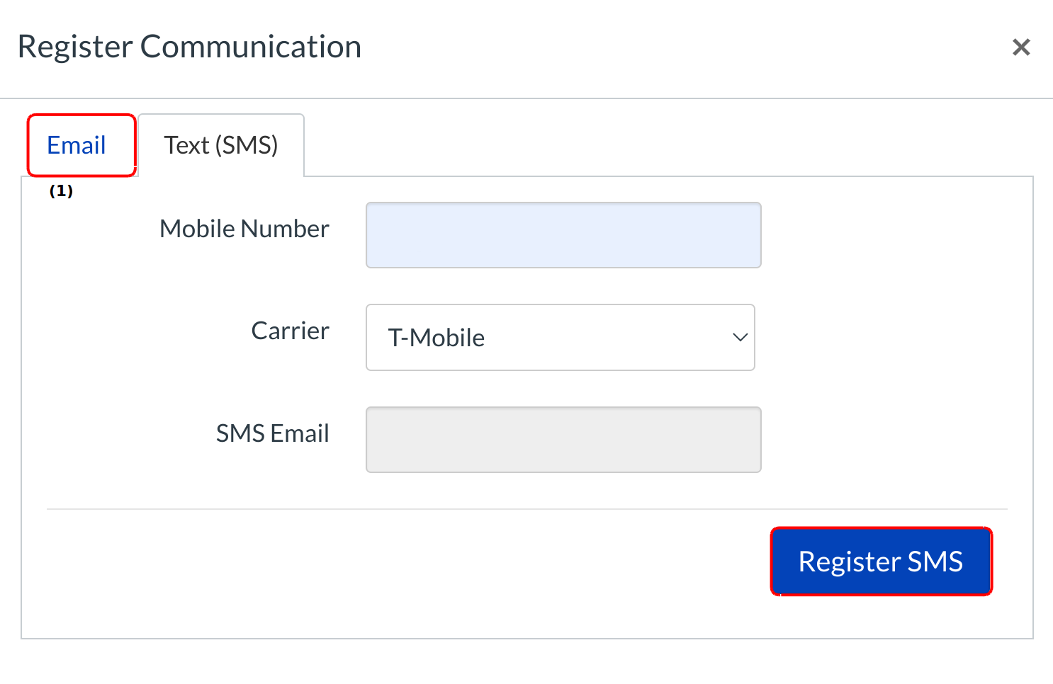 The SMS communication you added will show up under the Ways to Contact sidebar under Other Contacts [1]. To delete the SMS communication, click the Trash icon [2].