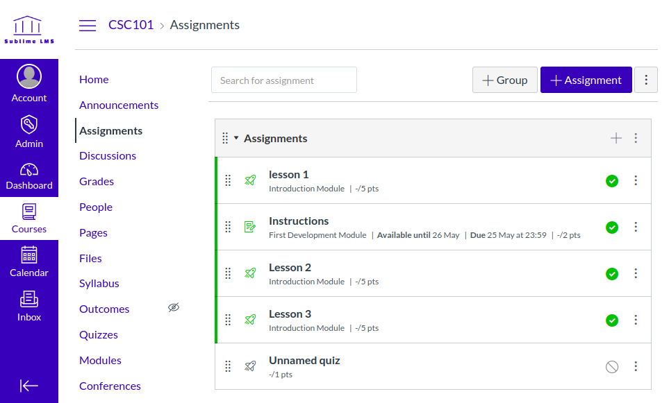 The Assignments tool in the Learning Management System allows you to accept, review and grade the student's assignment submissions online. It ultimately saves your time, increases student's motivation and reduces the course’s carbon footprint. Students can submit their assignments online through text entry, file uploads, Google Docs or URLs.