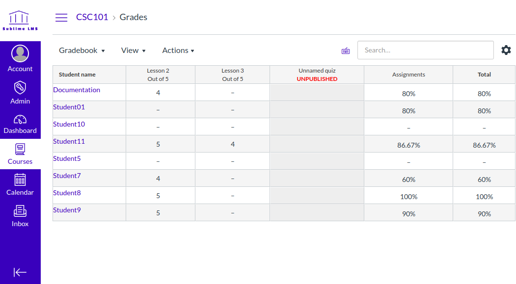 Grades can serve as a tracking tool to keep track of any student's progress. It can also be downloaded or uploaded for the student's record management and analysis using Excel.