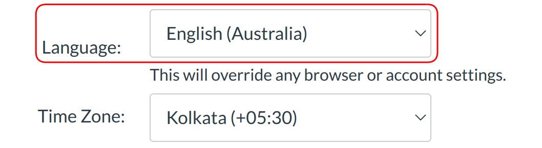 Note: Instructors have the option to change the language preference for their courses. If you enroll in a course where the instructor has made this change (most often for a foreign language course), the course language will override the language in your user settings.