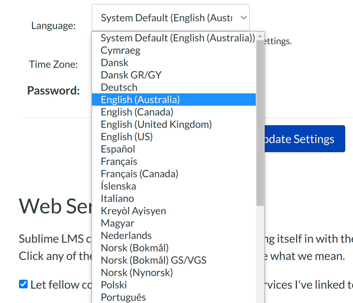 English is Sublime LMS ™ language default, but you can choose to view the Sublime LMS ™ interface in another language.