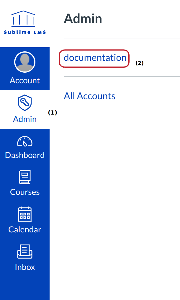 In Global Navigation, click the Admin menu [1], then click the name of the account [2].