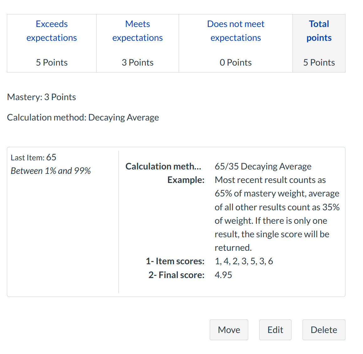 When instructors allow students to view Learning Mastery scores on the Grades page, students will see the name of the outcome.