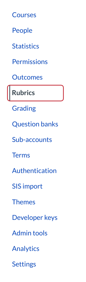 In Account Navigation, click the Rubrics link.