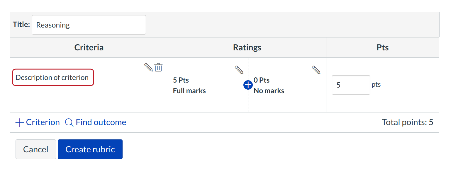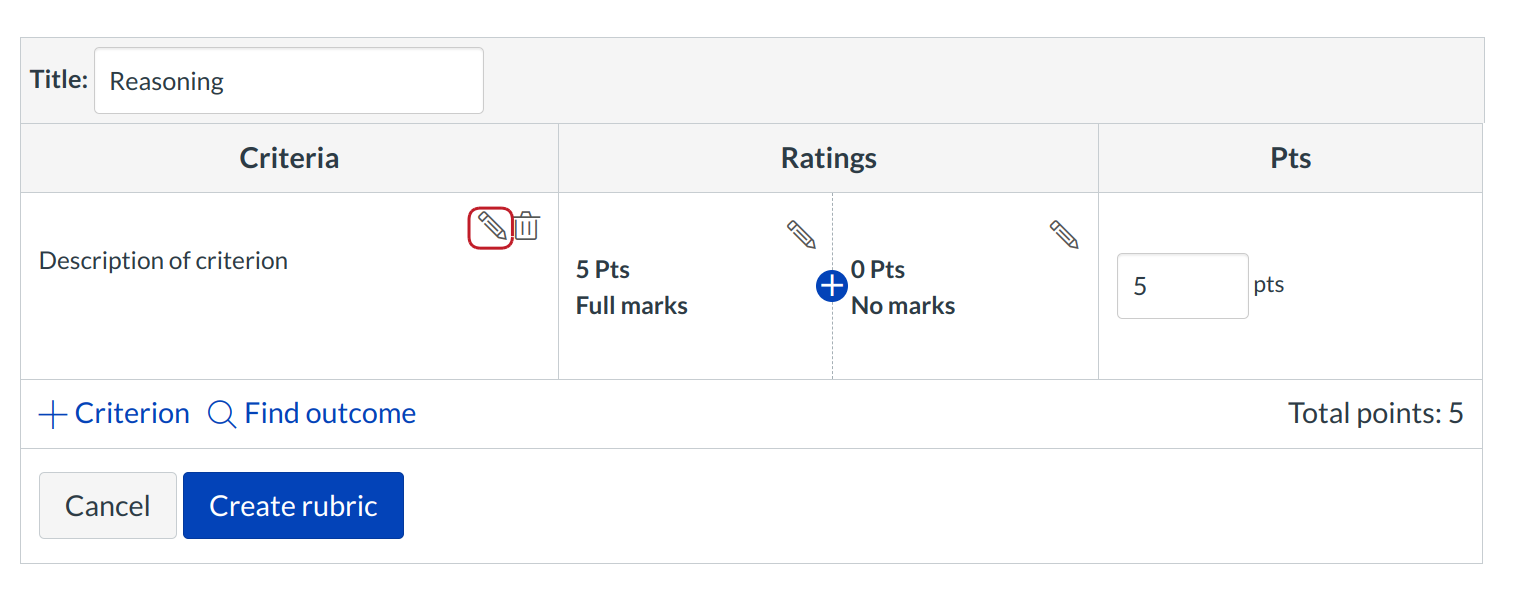 Click the Pencil icon next to the Criterion name to edit the Criterion description.