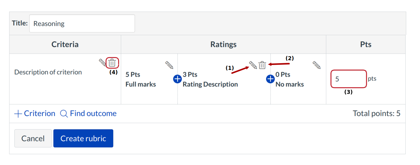 Edit the point value of an entire criterion by typing in the points field [3].