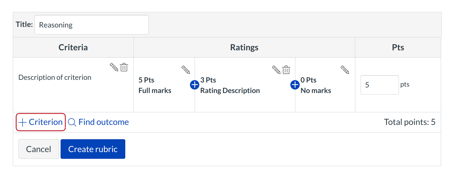 Click the Add Criterion link to add a new criterion to the rubric.