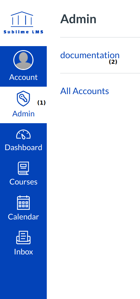 In Global Navigation, click the Admin menu [1], then click the name of the account [2].