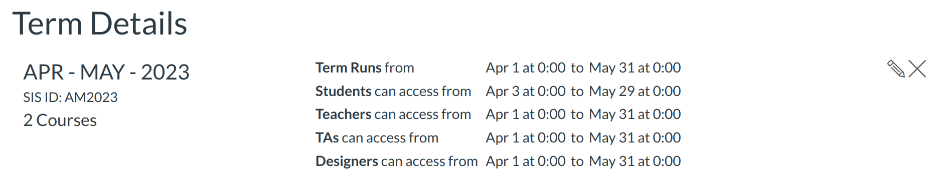 As you create a term, the student, teacher, and TA access dates will, by default, inherit the Term Runs from [date or term start] to [date or term end] dates unless an explicit date is entered in the fields.