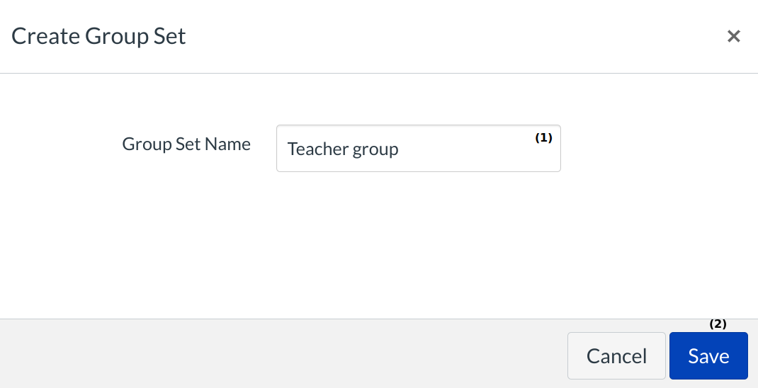 Type in a Group Set Name [1] and click Save [2].