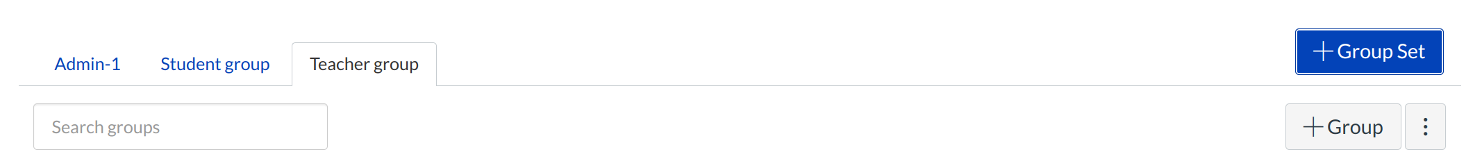 Click the + Group Set button. You can create different types of Groups (Admin- 1, student group).