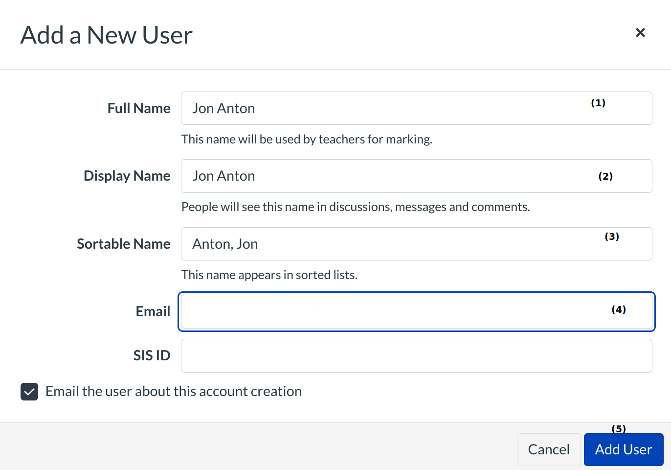 - Full Name is used for grading, SIS imports, and other administrative items.