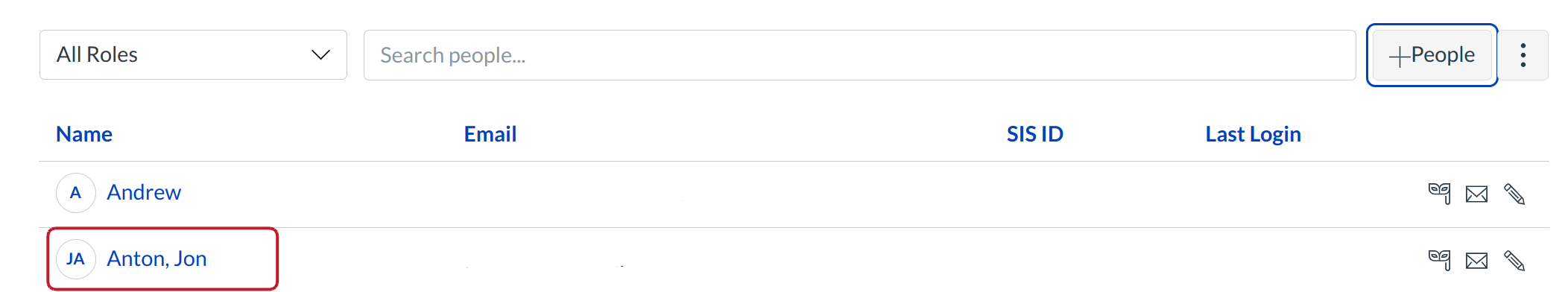 After clicking on the account link, you will see courses in the account. Locate the +people button and click on it.
