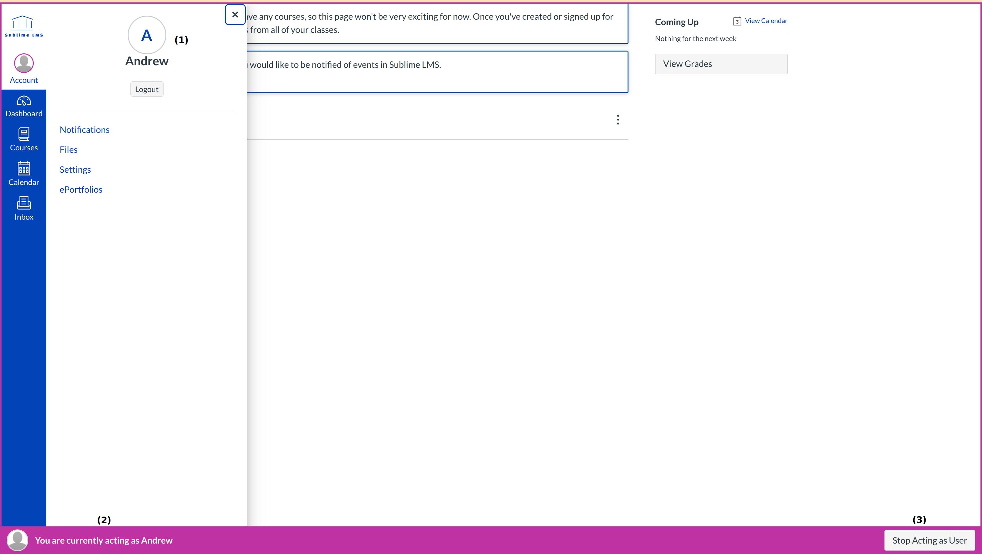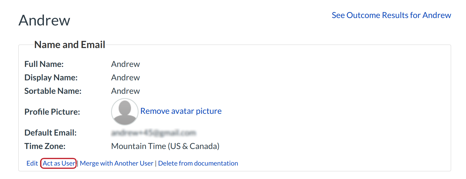 When you are finished acting as the user, click the Stop Act as user [3] button.