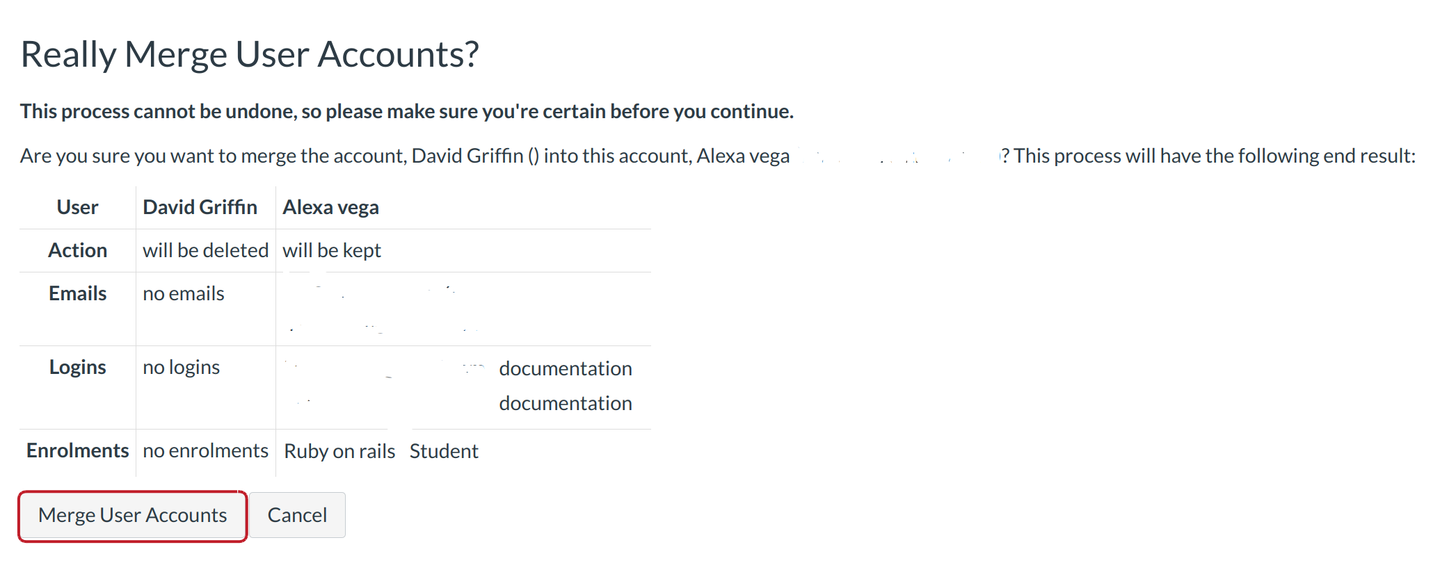 You will be prompted one more time to ask if you are sure about merging the users together. When you are ready, click the Merge User Accounts button.
