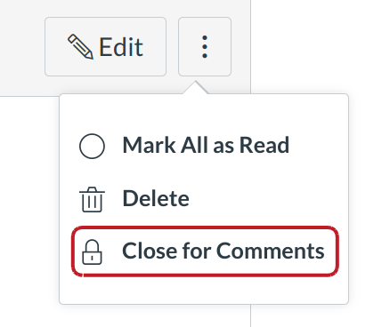 To stop students from posting replies to individual announcements, use the close for comments button.
