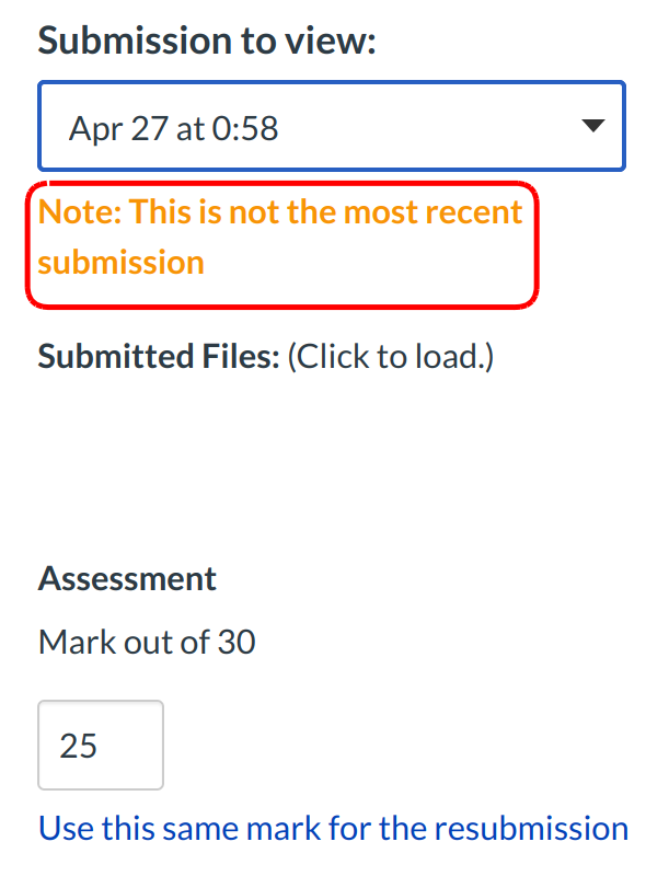 If you view an older submission, Sublime LMS ™ will warn you that the submission you are viewing is not the most recent submission.