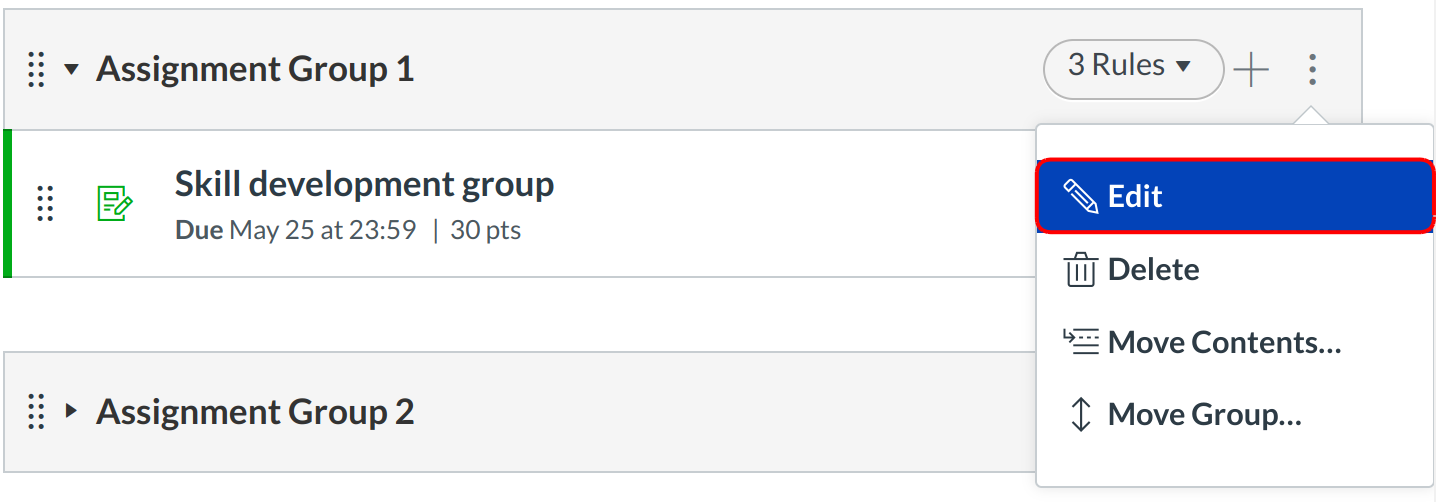 For creating the Grading Rules click the Edit option present in the created Assignment Group.