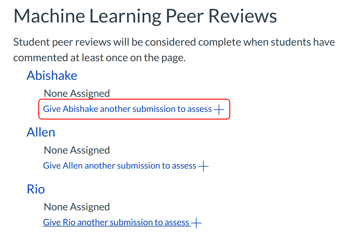 Manually assigning peer reviews allows you to choose which students review a certain assignment.