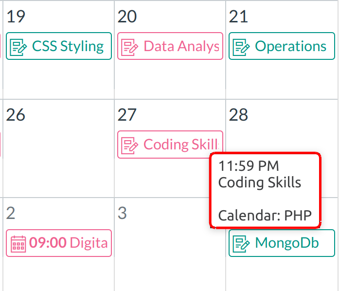 Students will see your event on their own course Calendar. When they click the event title, they will see a summary page with all of the rich content you've added.