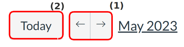 In month view, you can click the calendar buttons to move from month to month [1]. You can also easily view the events for the current date [2].