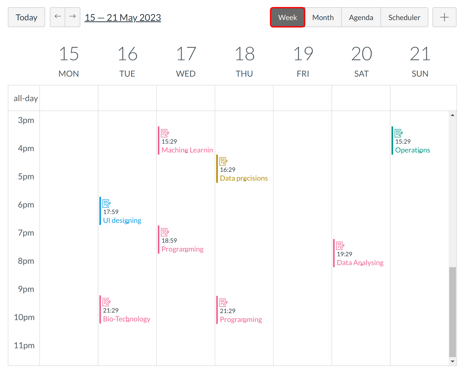 Note: Colors are arbitrarily assigned to each course.