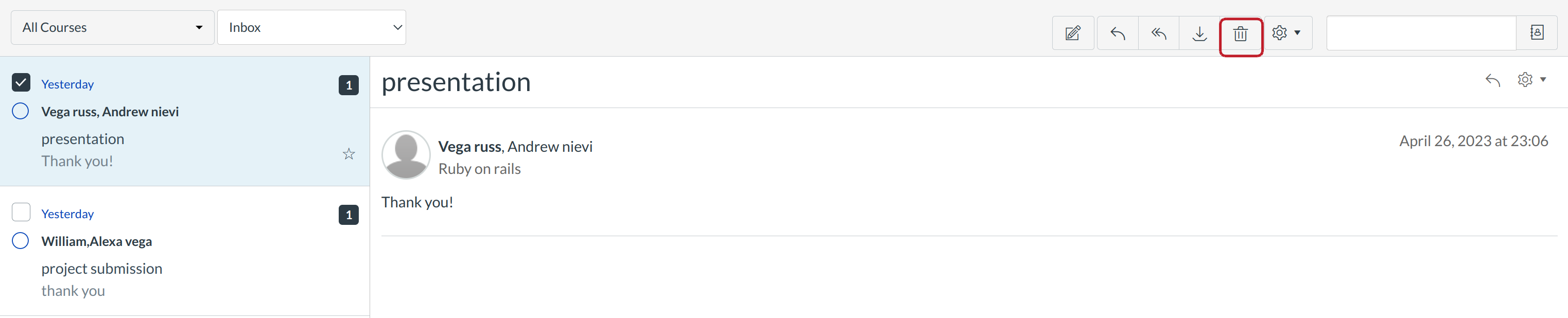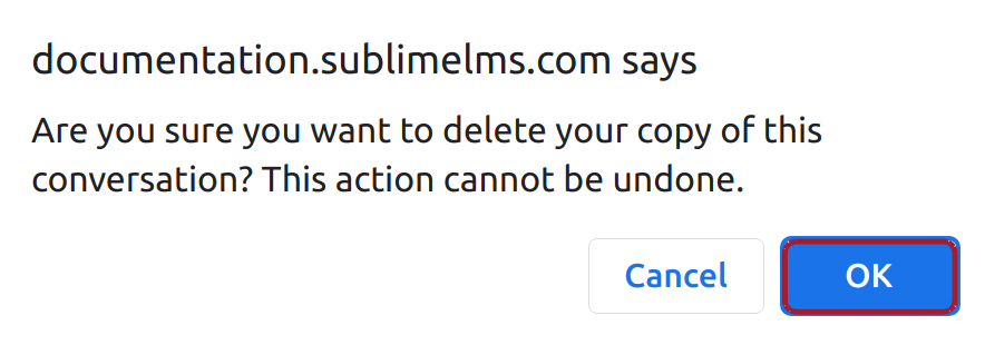 Select the OK button to confirm deletion. All messages from that conversation will be deleted.