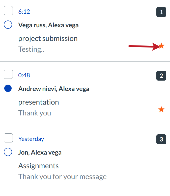 Click the star icon to turn it yellow, indicating a starred message. If you want to remove the star, click the star icon again.