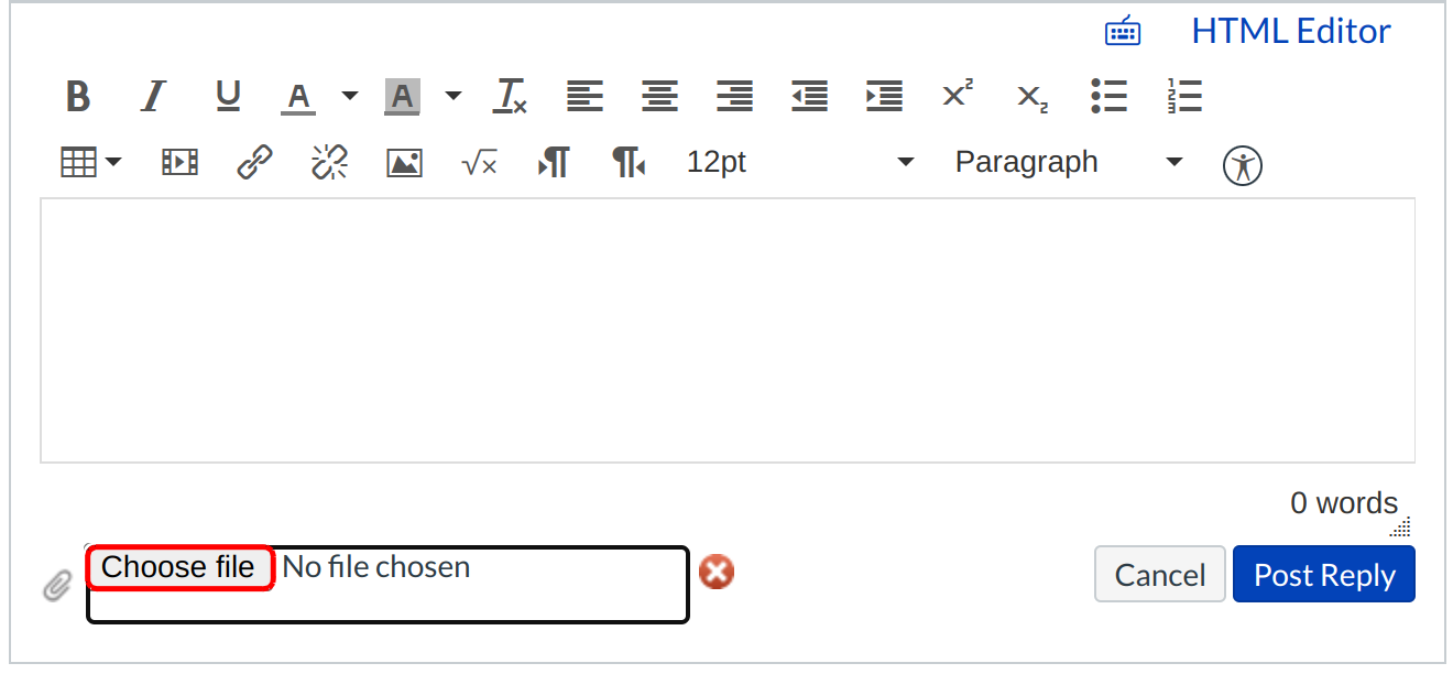 Note: If the attachment icon does not appear, this option is not available in your course.