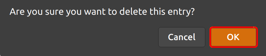 To delete the entry, click the OK button.