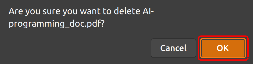 Note: Currently you can only delete one file at a time.