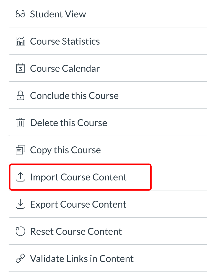You can also import files through the Course Import Tool in Course Settings. In Course Navigation, click the Course Settings link.