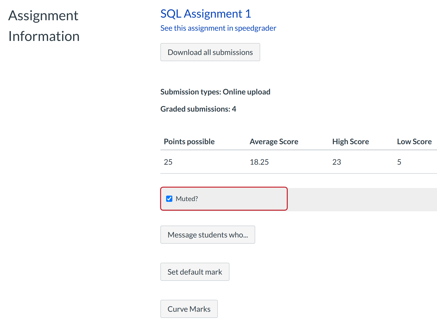 Students can still see and submit a muted assignment. Only the grade will be hidden.