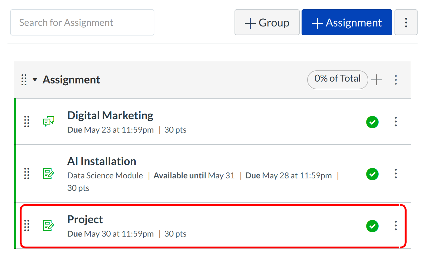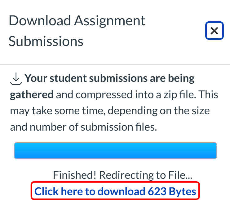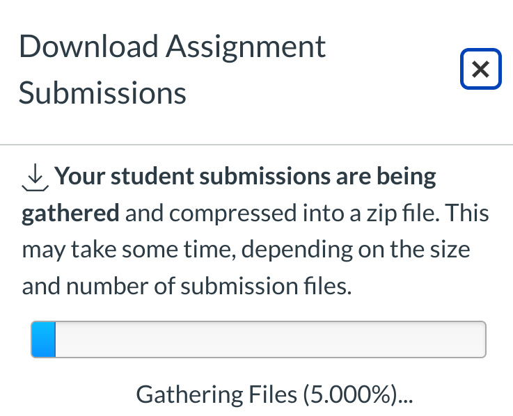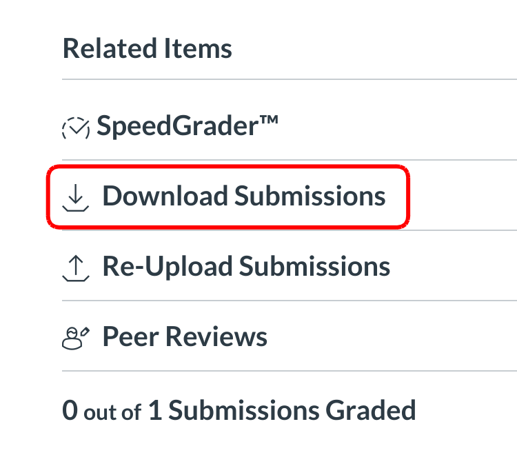 Bulk downloading assignments will take all the submissions and create a .zip file that you can download and grade on your computer. You can download the submissions through Grades or Assignments.