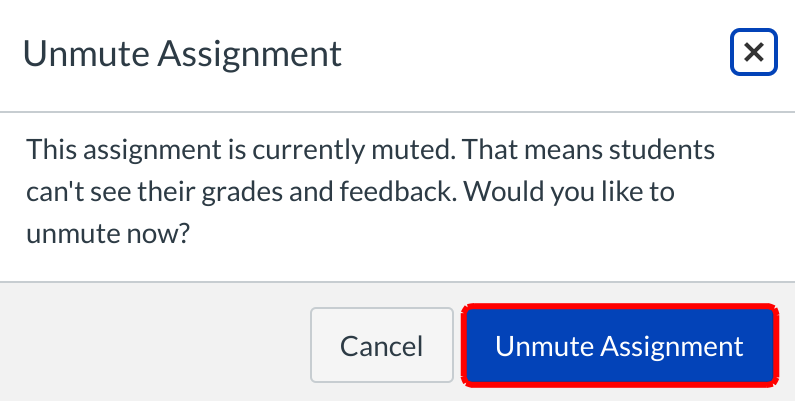 Click the Unmute Assignment button to unmute the assignment. Students will now be able to see their grades and feedback.
