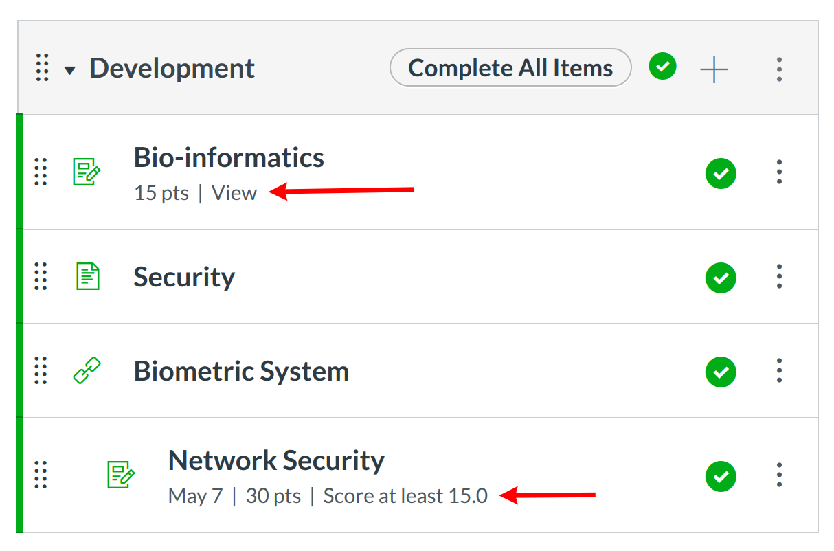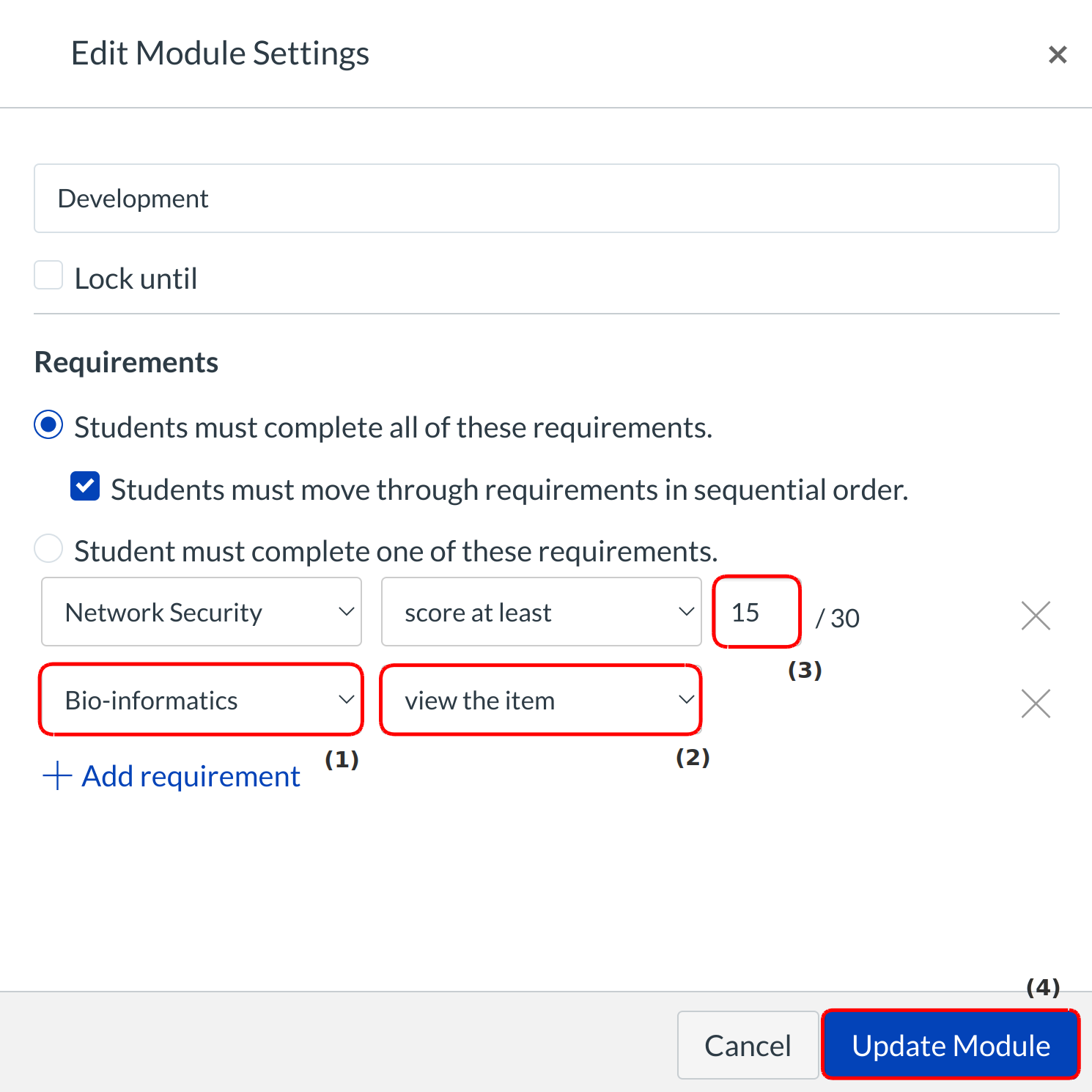Note: If you have multiple iterations of an module item, you can set different requirements for each item.
