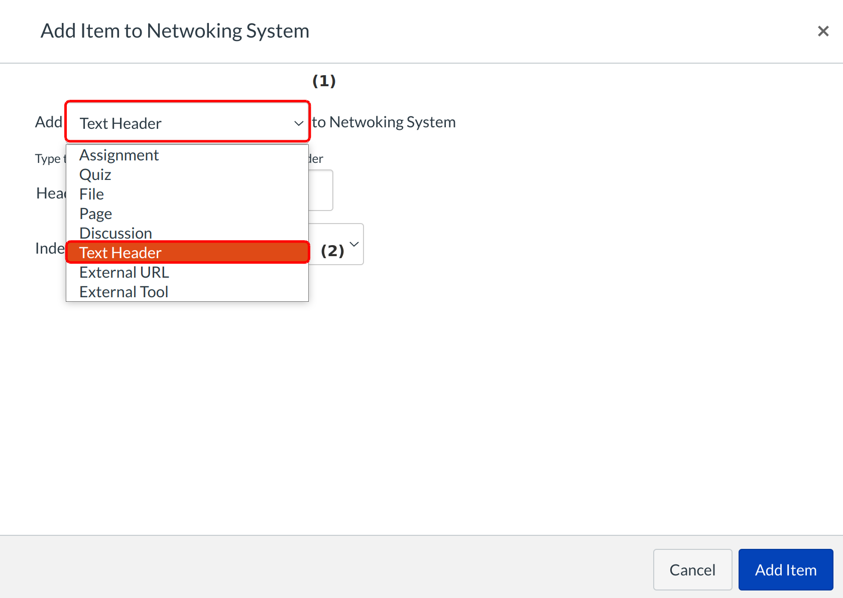 Click the Add [1] to drop-down menu and select the Text Header [2] option.