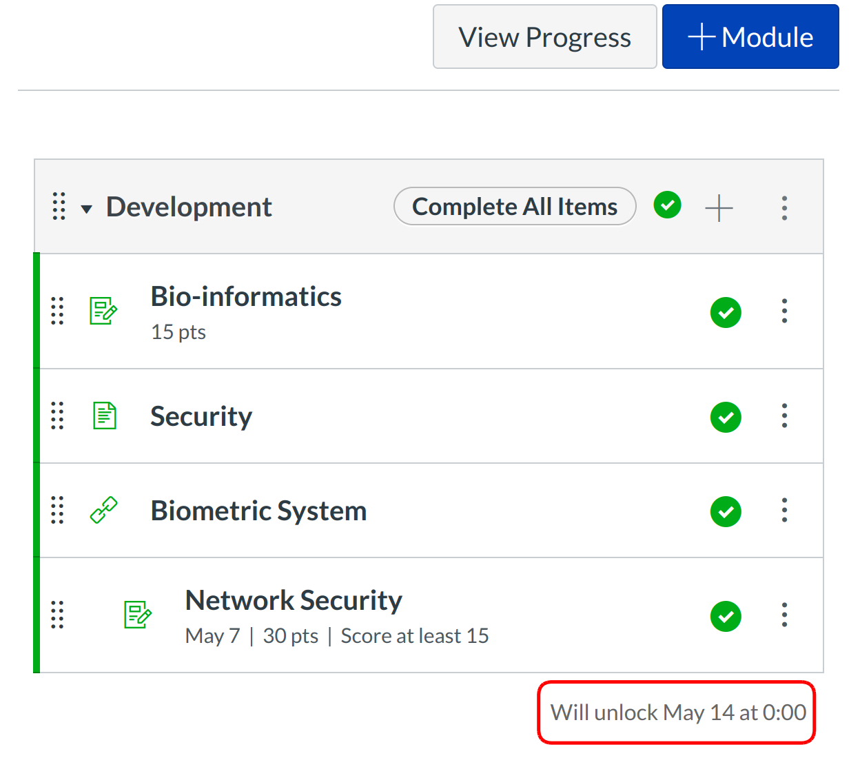 You can set Modules to be locked until a given date.