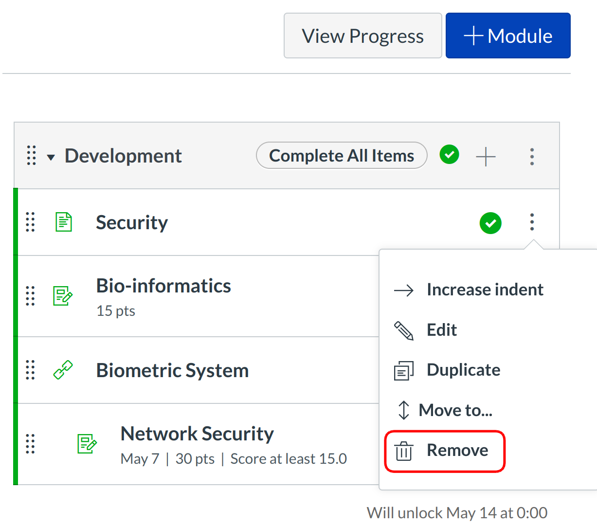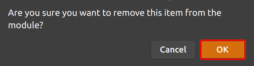 Note: Removing a item will only remove it from the selected module. If you have included the item in other modules, they will not be affected.