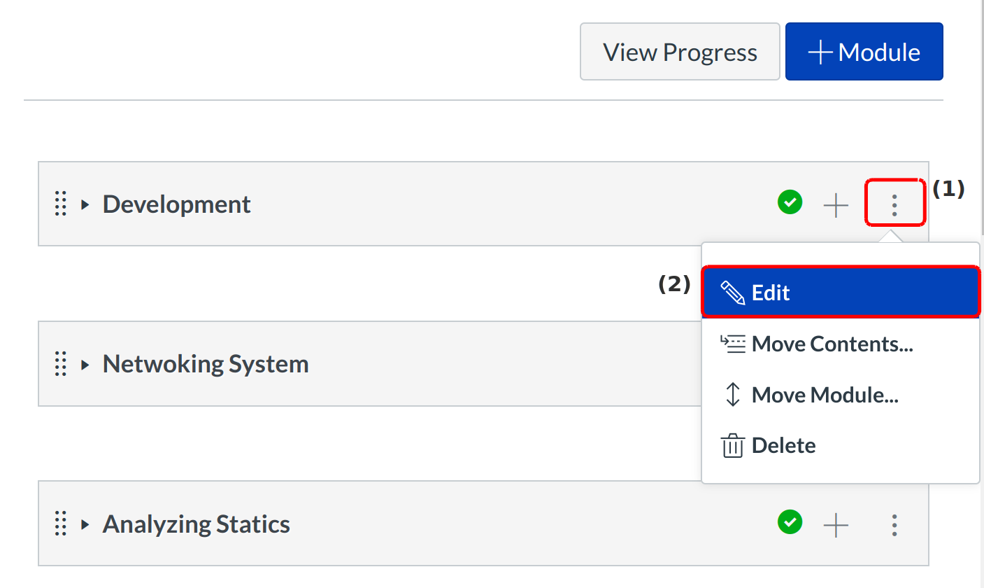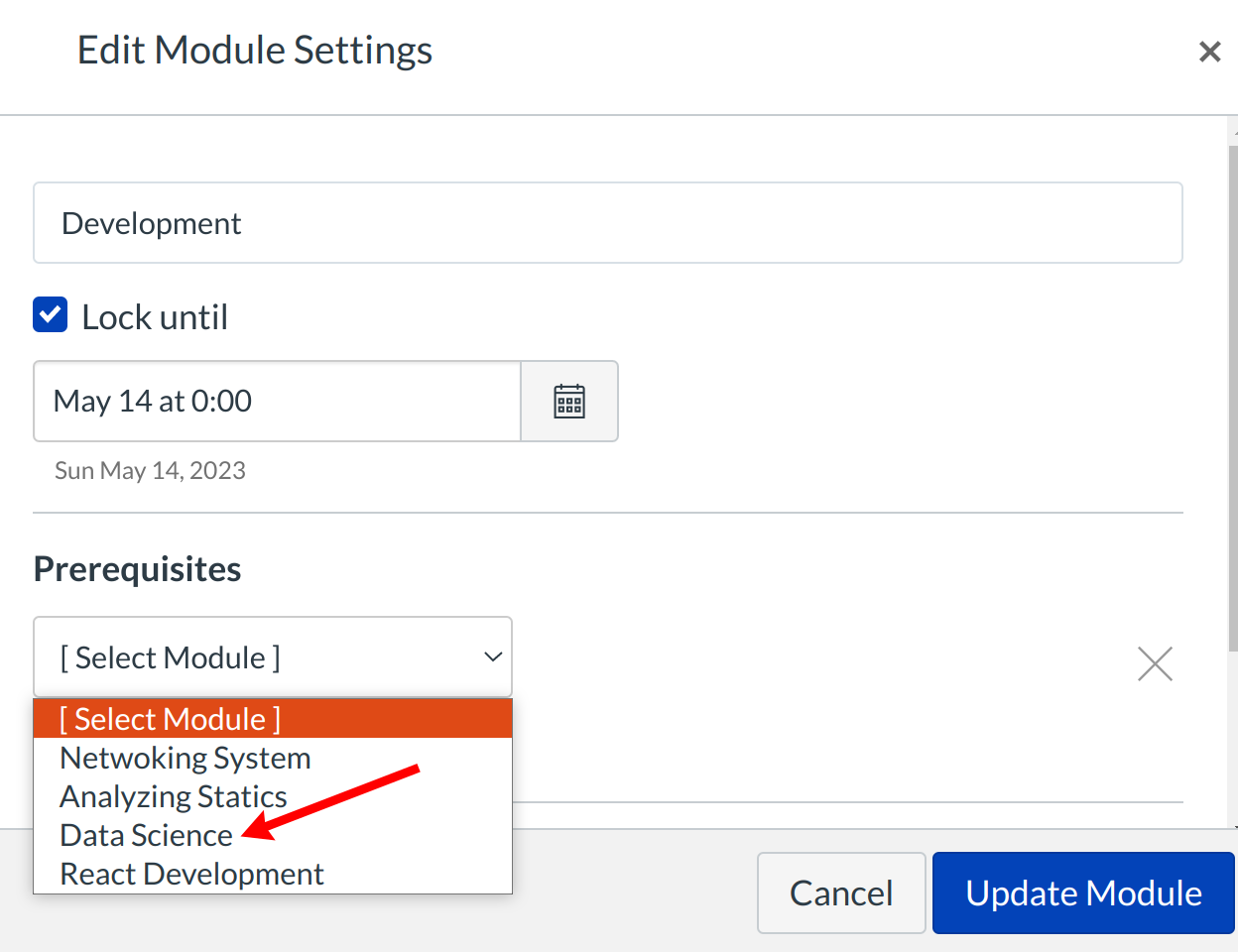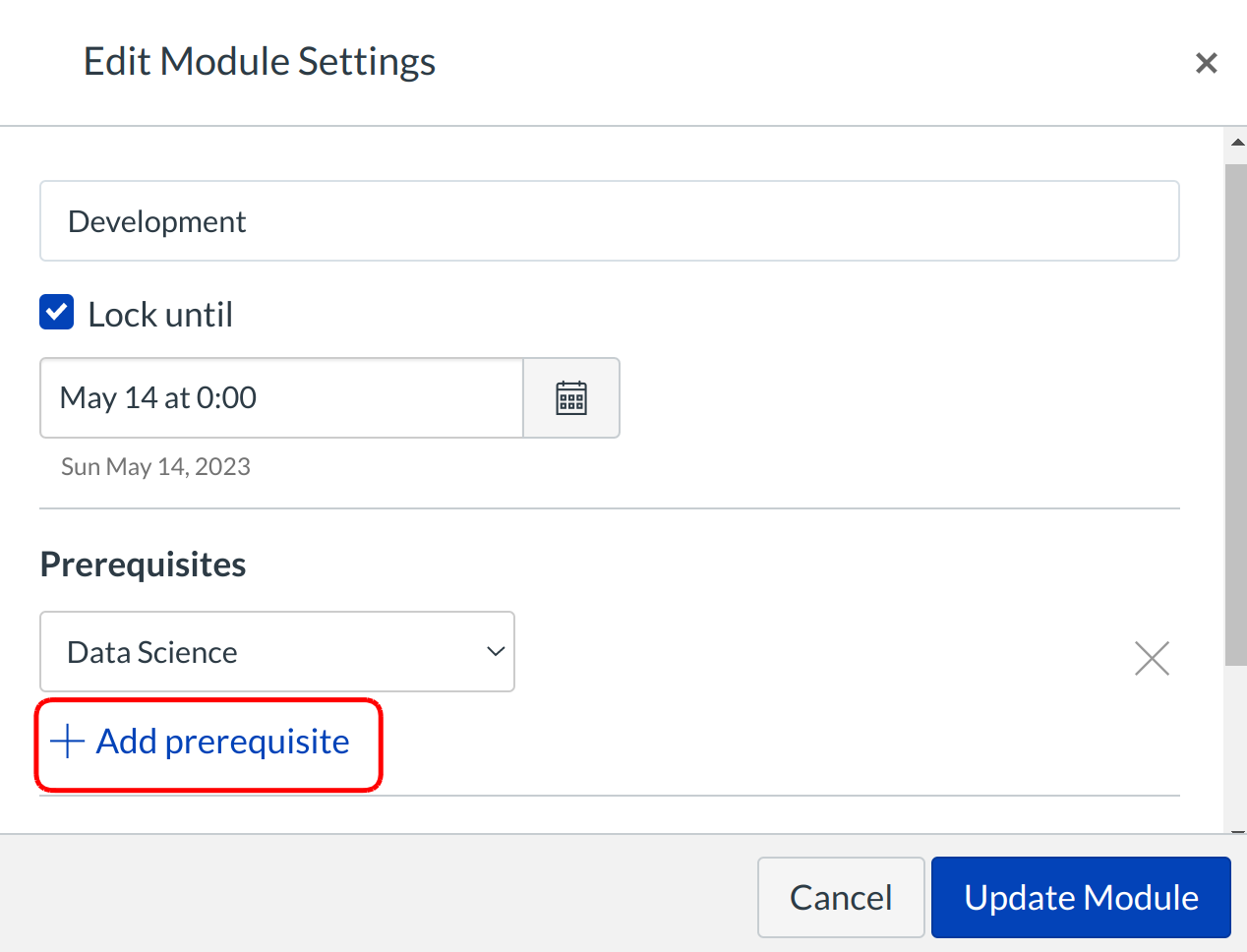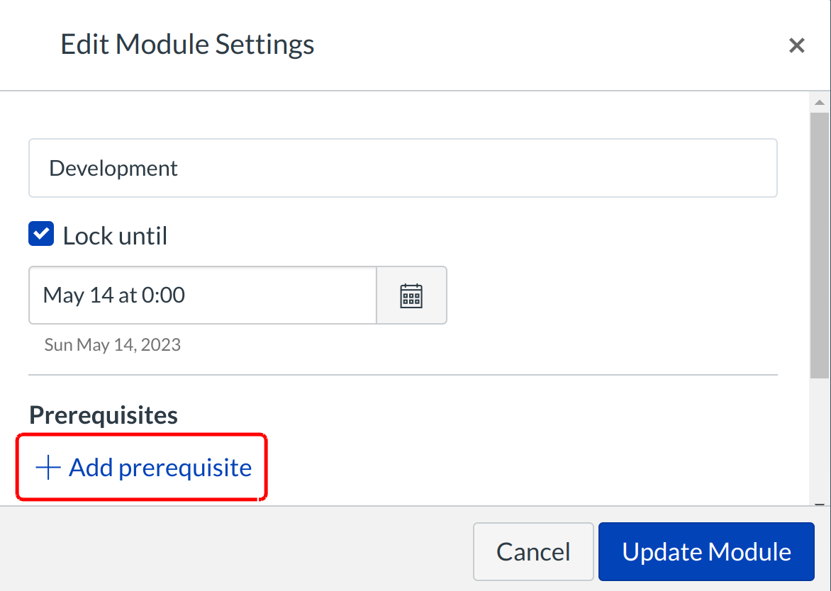 Note: You will only see the Add Prerequisite link if you have created at least two modules.