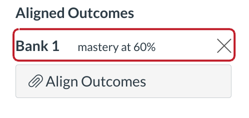 Aligning outcomes to a bank of questions can provide a more accurate measurement than a single question because of the possible variety of questions and what is being measured. When applicable, you can align multiple outcomes to a question bank by aligning outcomes one at a time.