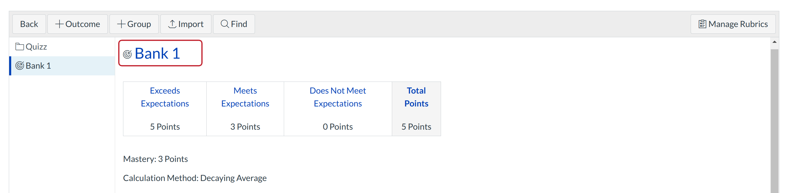 You can view all rubrics and artifacts aligned with an outcome. Open Outcomes in the Course Navigation menu.