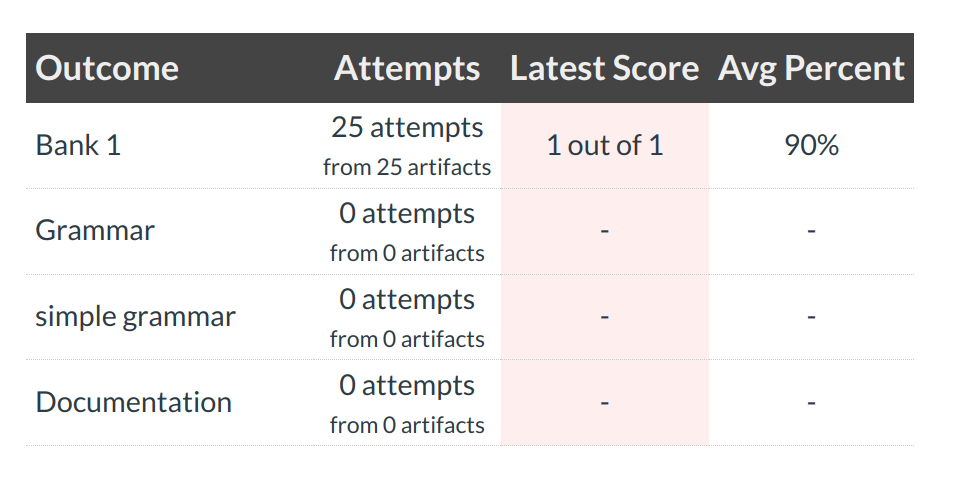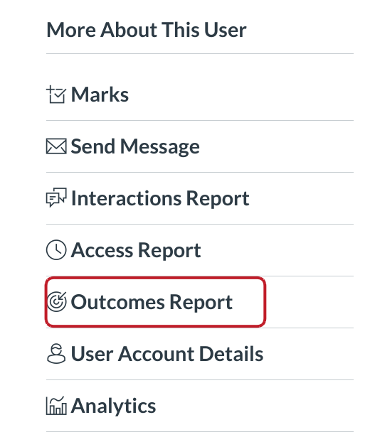 Choose the student you want the Outcome report for by clicking on the name [1].