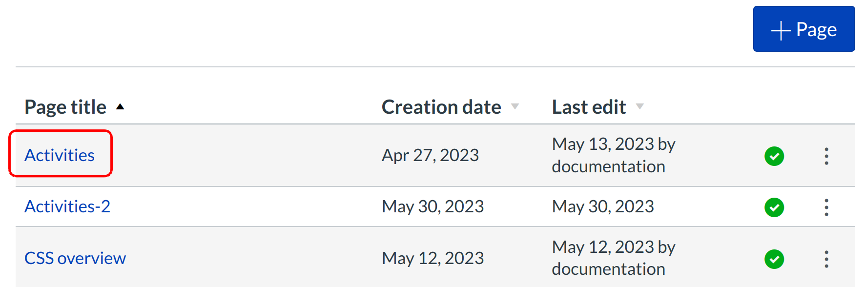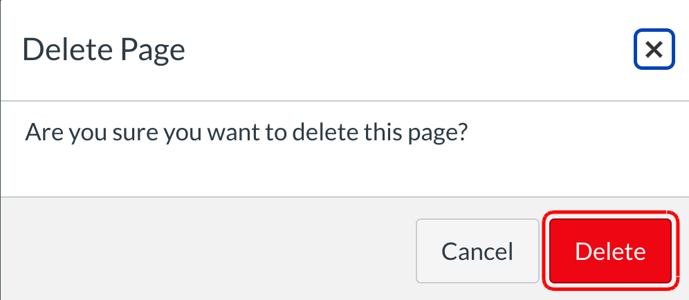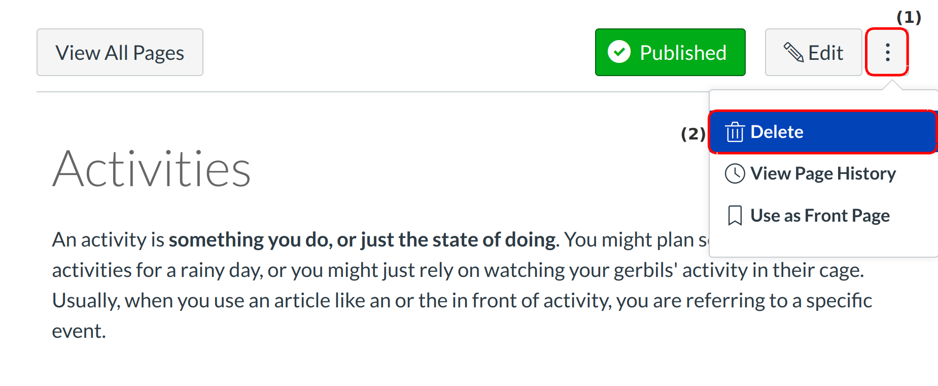 You can delete a Page if you no longer need it or if it is not used as the Front Page for your course.