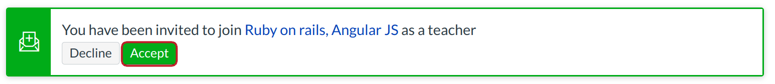 Instructor will see an invitation window reminding them of their course invitation. Click the Accept button.