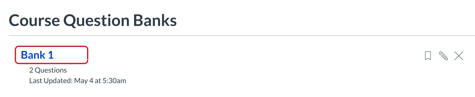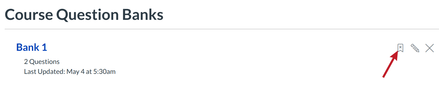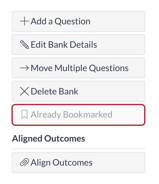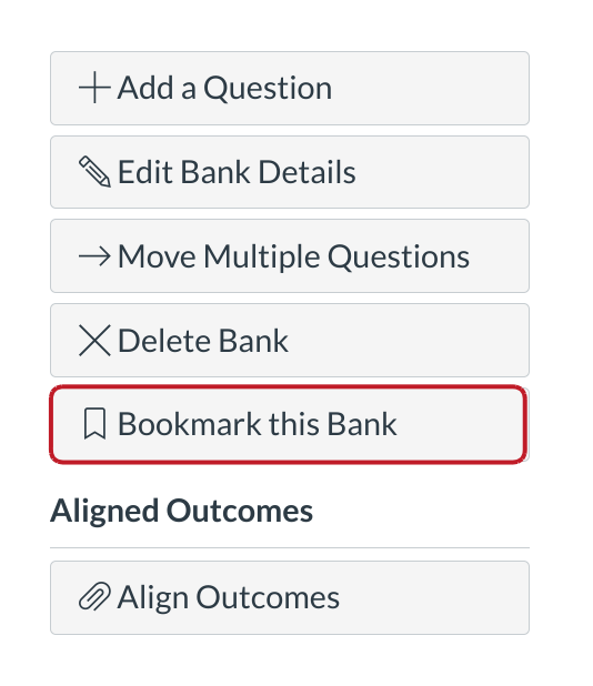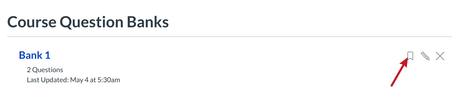 The Question Bank Bookmark feature gives instructors a way of keeping track of frequently accessed Question Banks. Bookmarks save you time from having to search through Question Banks, especially if your course or account contains a significant number of Question Banks.