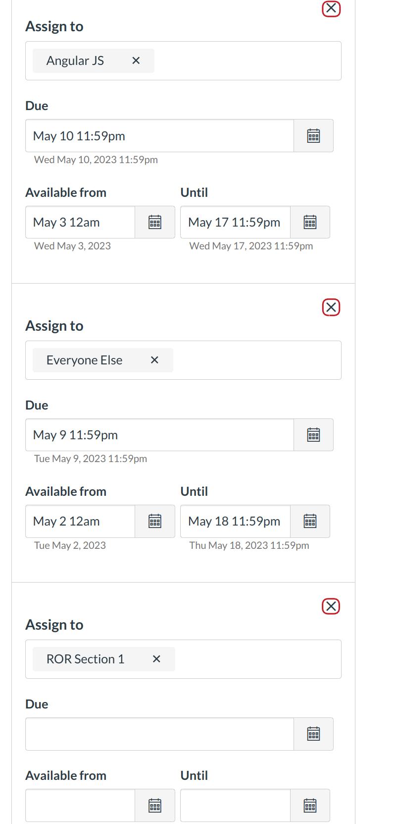 You can delete additional due dates by clicking the delete button next to the section you want to remove.