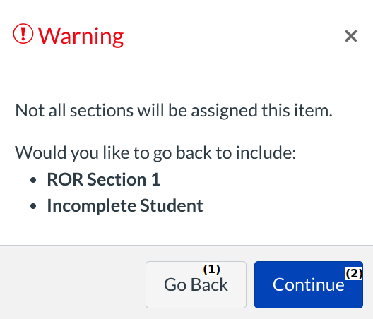 You can click the No Due Date button [1] if you don't want to add due dates to the other sections, or click the Go Back button [2] to go back and add due dates.