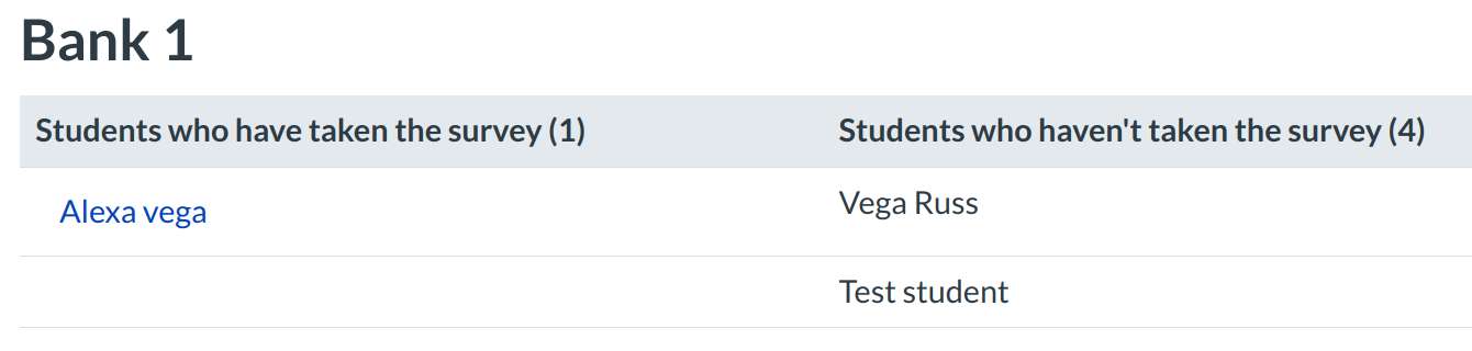 Under Students who have taken the survey, click the name of a student you wish to view statistics for.