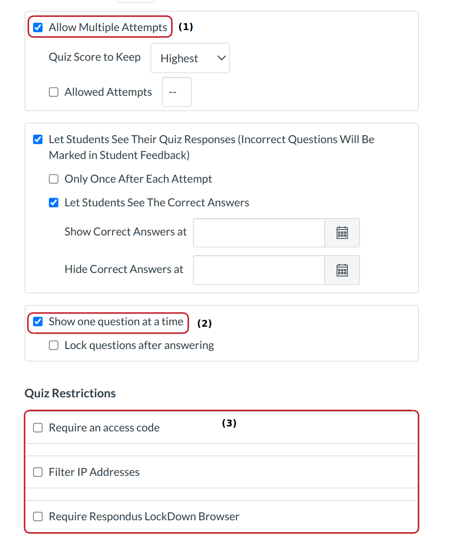 - You can restrict the quiz so it can only be taken in specific situations.